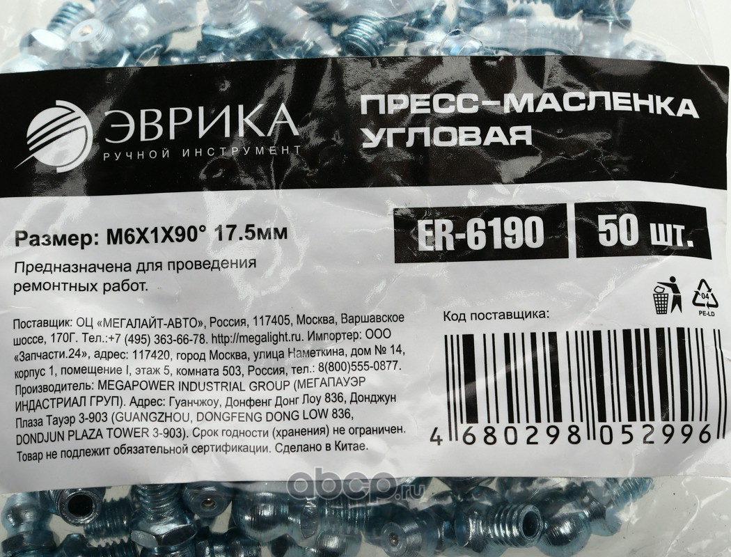 Пресс-масленка угловая M6X1X90° 17.5мм /50/3000 NEW