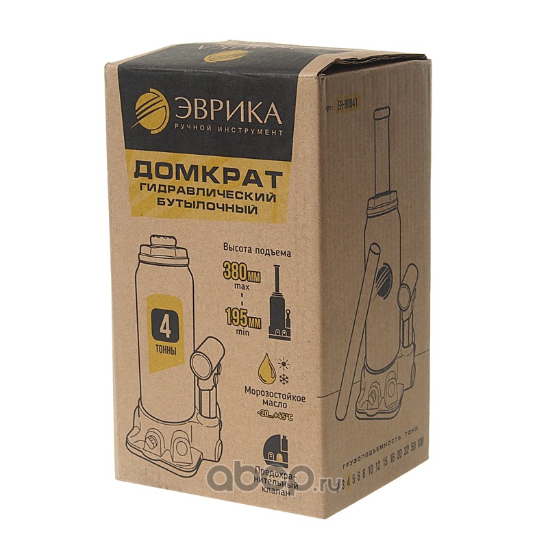 | ЭВРИКА | ER80041 | Домкрат гидравлический бутылочный с клапаном 4т, ремкомплект (выс. подъема 195-380мм) /1/5 | ||