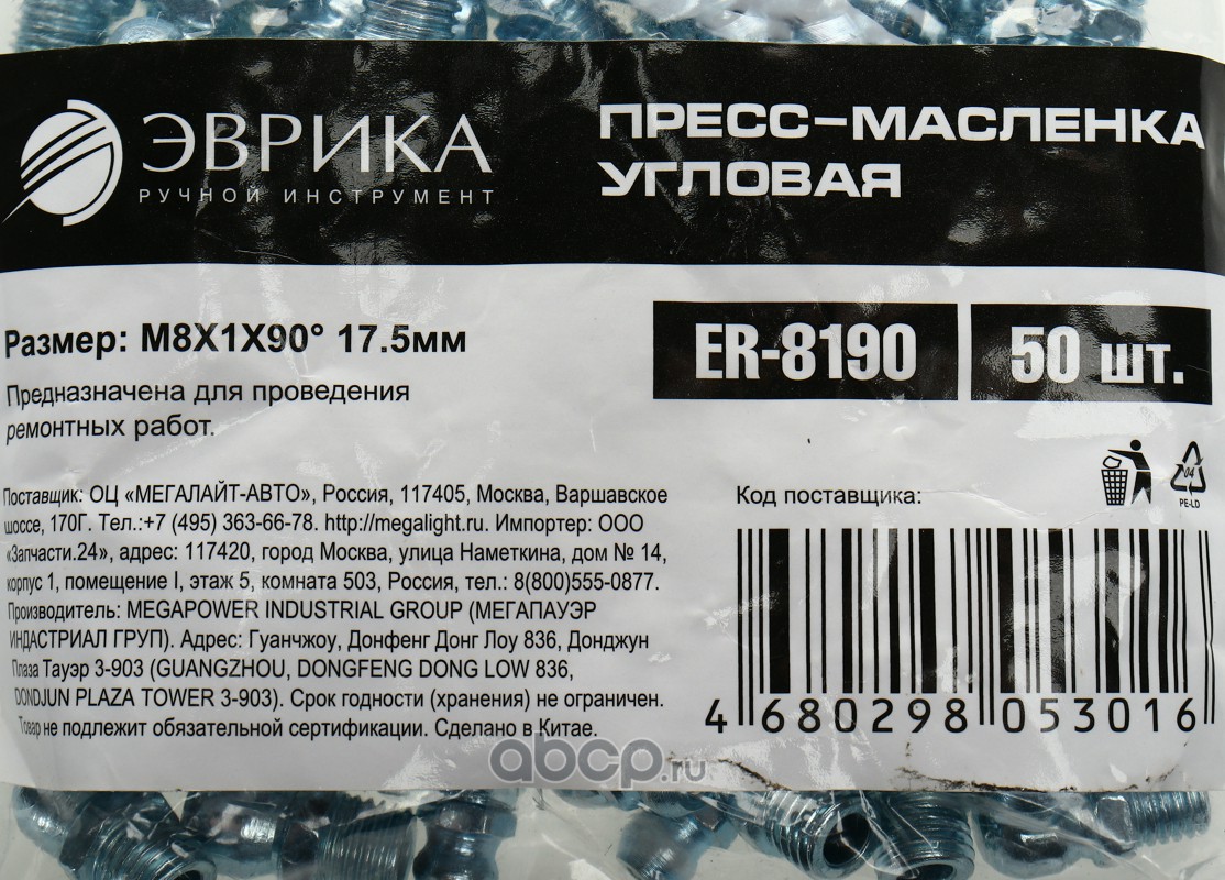 Пресс-масленка угловая M8X1X90° 17.5мм /50/3000 NEW