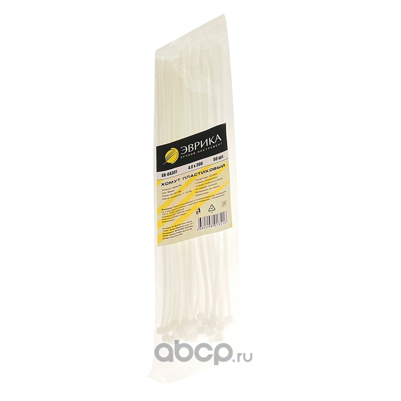 Хомут пластиковый белый 4.0x300мм универсальный (50шт) /1/300