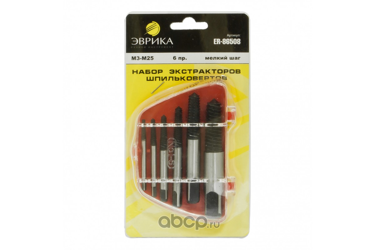 Набор экстракторов шпильковертов 6пр. (М3-М25; Ø:3-6мм, 6-8мм, 8-11мм, 11-14мм, 14-18мм, 18-22мм; "мелкий шаг") пластиковый кейс /1/2