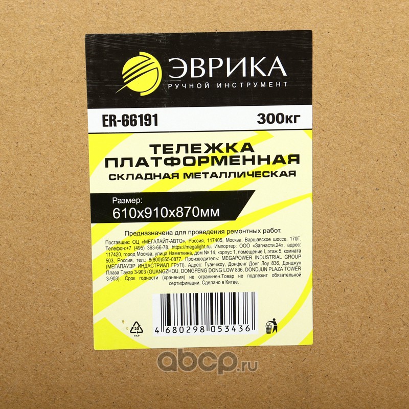 Тележка платформенная складная металлическая (610х910х870мм, г/п 300кг) /1 NEW