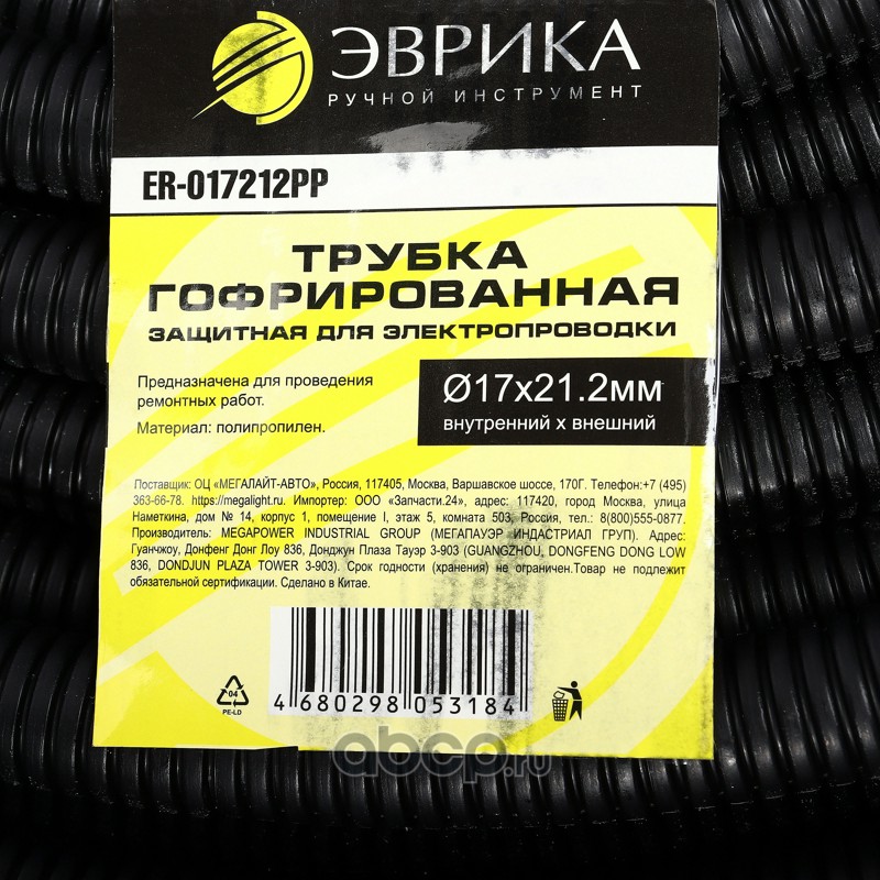 Трубка гофрированная защитная для электропроводки 100м полипропилен (внутренний х внешний Ø17х21.2мм) /1/2 NEW