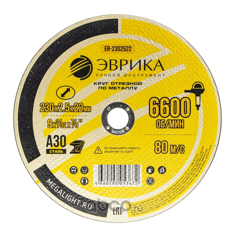 Круг отрезной по металлу 230х2.5х22,2мм А30 /1/10/20/100 NEW
