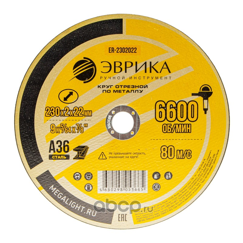 Круг отрезной по металлу 230х2х22,2мм А36 /1/10/150 NEW