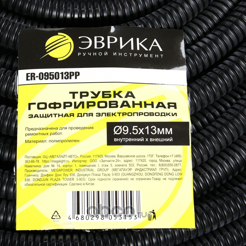 Трубка гофрированная защитная для электропроводки 100м полипропилен (внутренний х внешний Ø9.5х13мм) /1/4 NEW