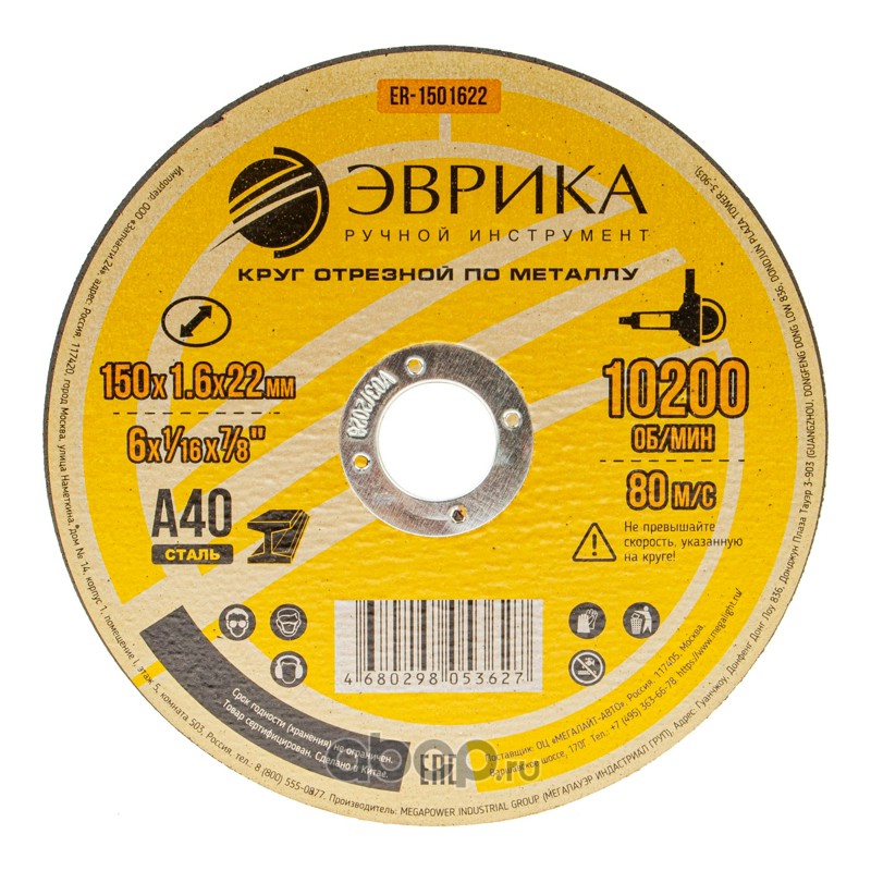 Круг отрезной по металлу 150х1.6х22,2мм А40 /1/5/400 NEW
