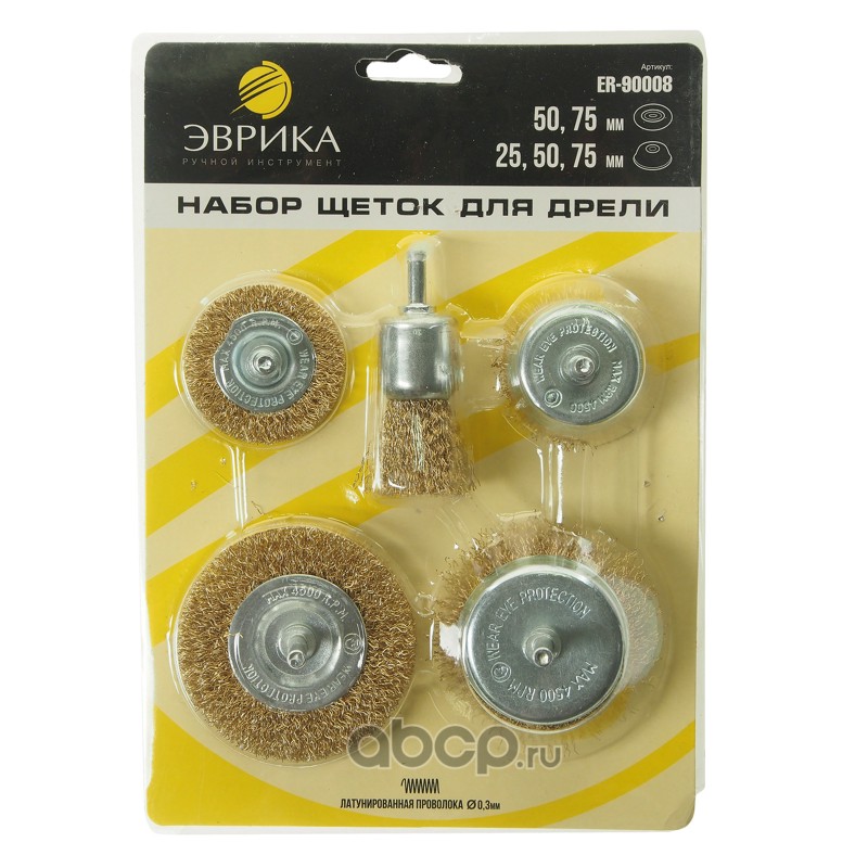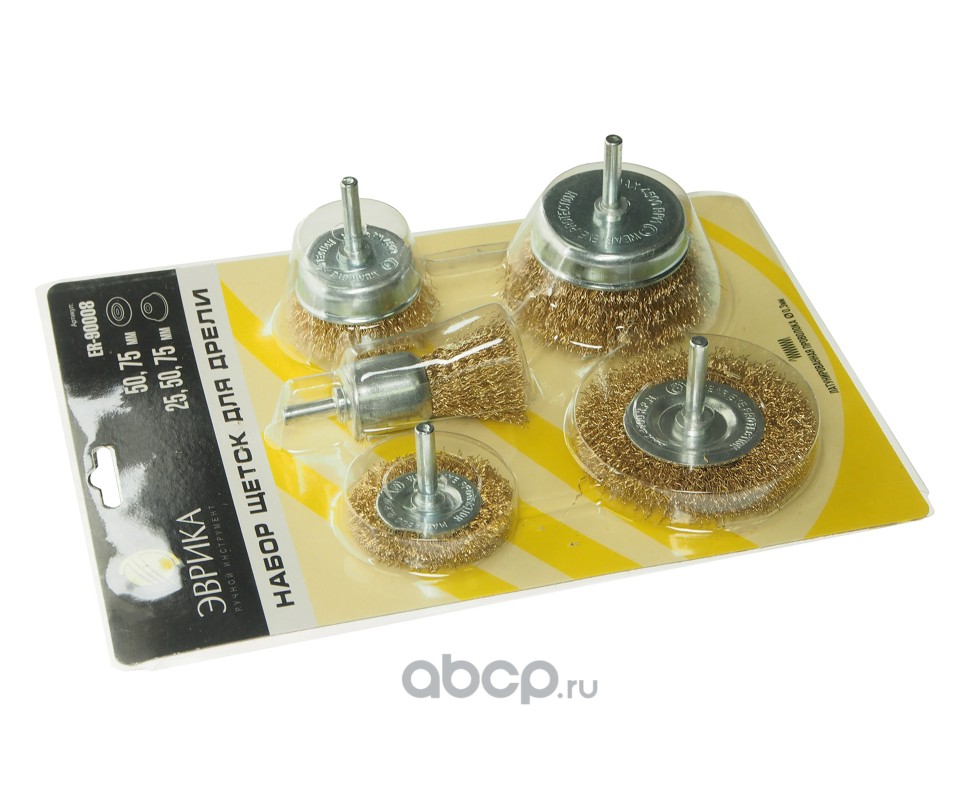 Набор щеток для дрели 5пр.("Плоские" 50,75мм, "Чашки" 25,50,75мм, со шпильками)0,3мм в блистере (макс. 4500 об/мин.) /1/40 NEW