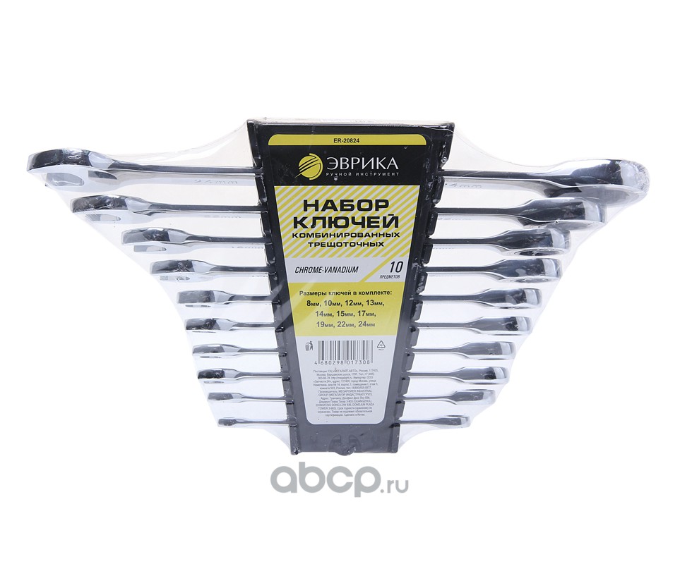 Набор ключей комбинированных трещоточных 10 предметов 8,10,12,13,14,15,17,19,22,24мм (на держателе) 1/5/10