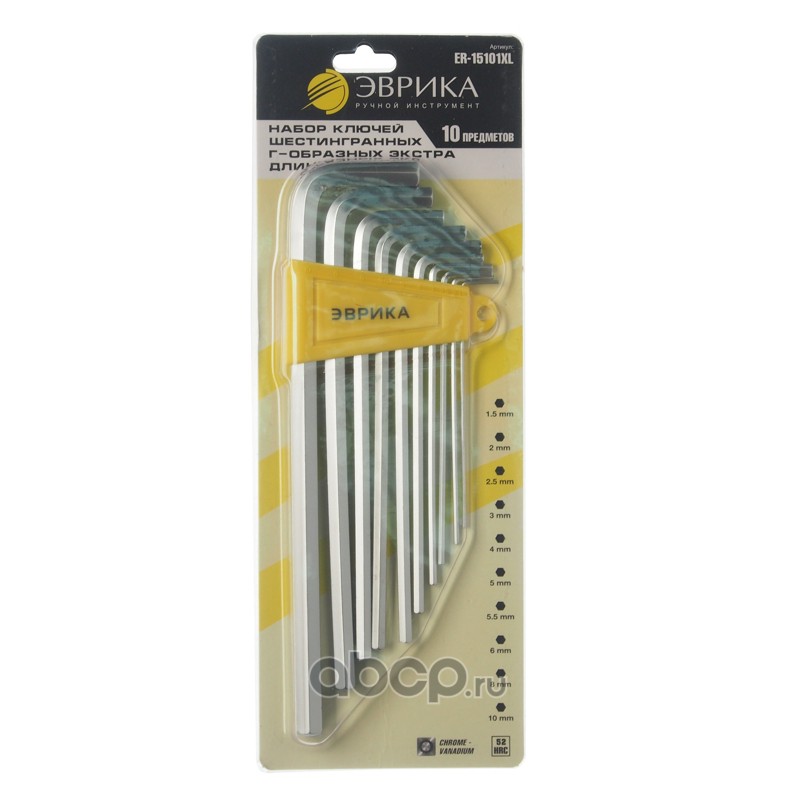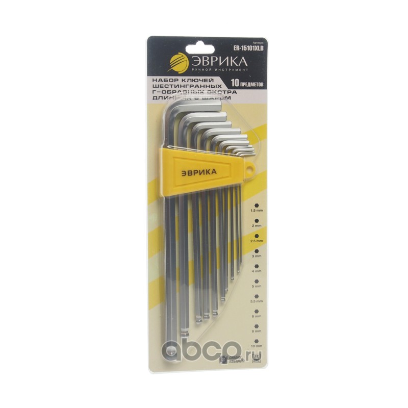 | ЭВРИКА | ER15101XL | Набор ключей шестигранных экстра длинных 1.5-10мм 10пр. /1/12/60 | ||