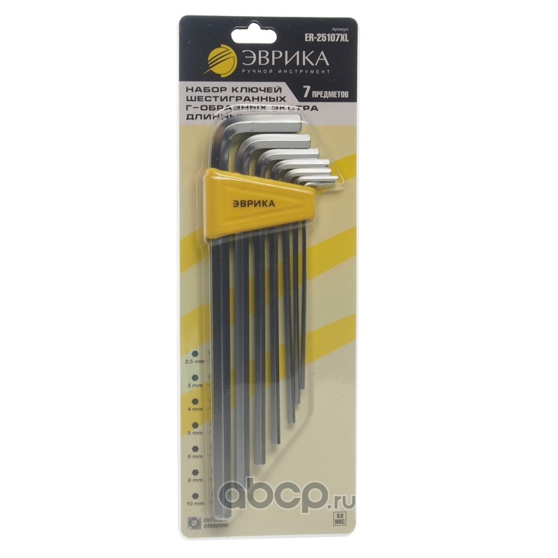 | ЭВРИКА | ER25107XL | Набор ключей шестигранных экстра длинных 2.5-10мм 7пр. /1/12/60 | ||
