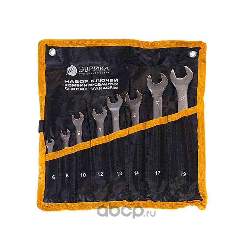 | ЭВРИКА | ER10080 | Набор ключей комбинированных (6,8,10,12,13,14,17,19мм) сатинированных планшет 8 предметов 1/20 | ||