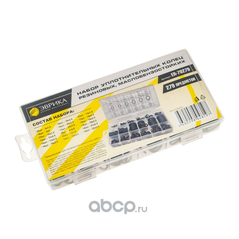 Набор уплотнительных колец 3х1.5-22х3.5мм резиновых, маслобензостойких, 279пр., в кейсе /1/100 NEW