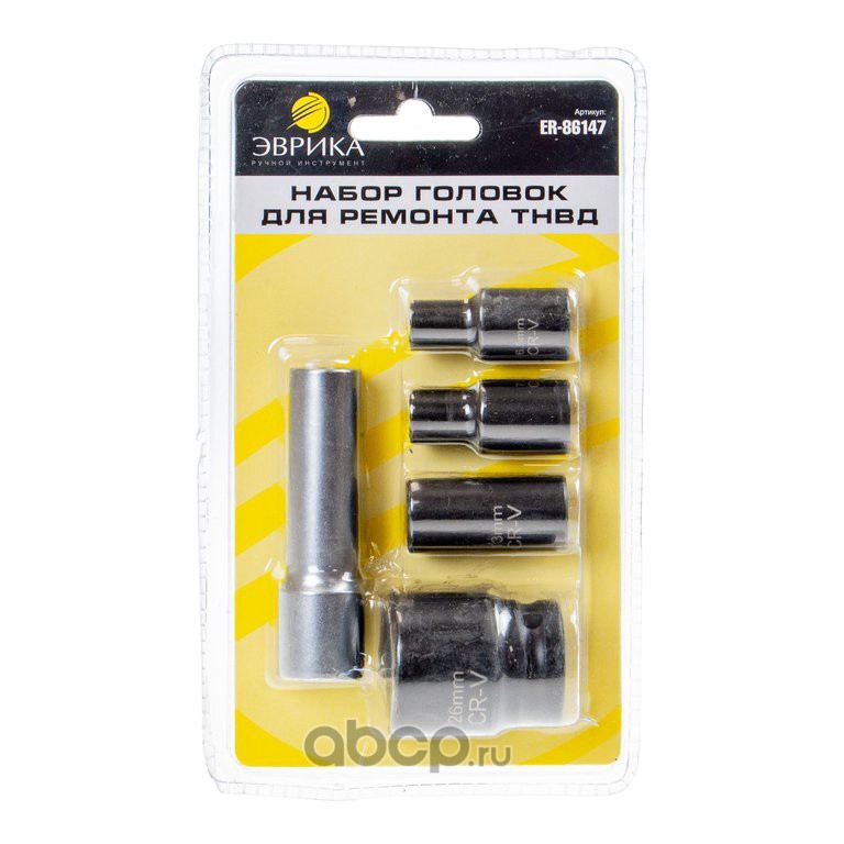 Набор головок для ремонта ТНВД (головка 3-х гранная: 3/8"-6.5, 7.5, 13мм, 1/2"-26мм; головка 2-х гранная 1/2"), в блистере /1/15