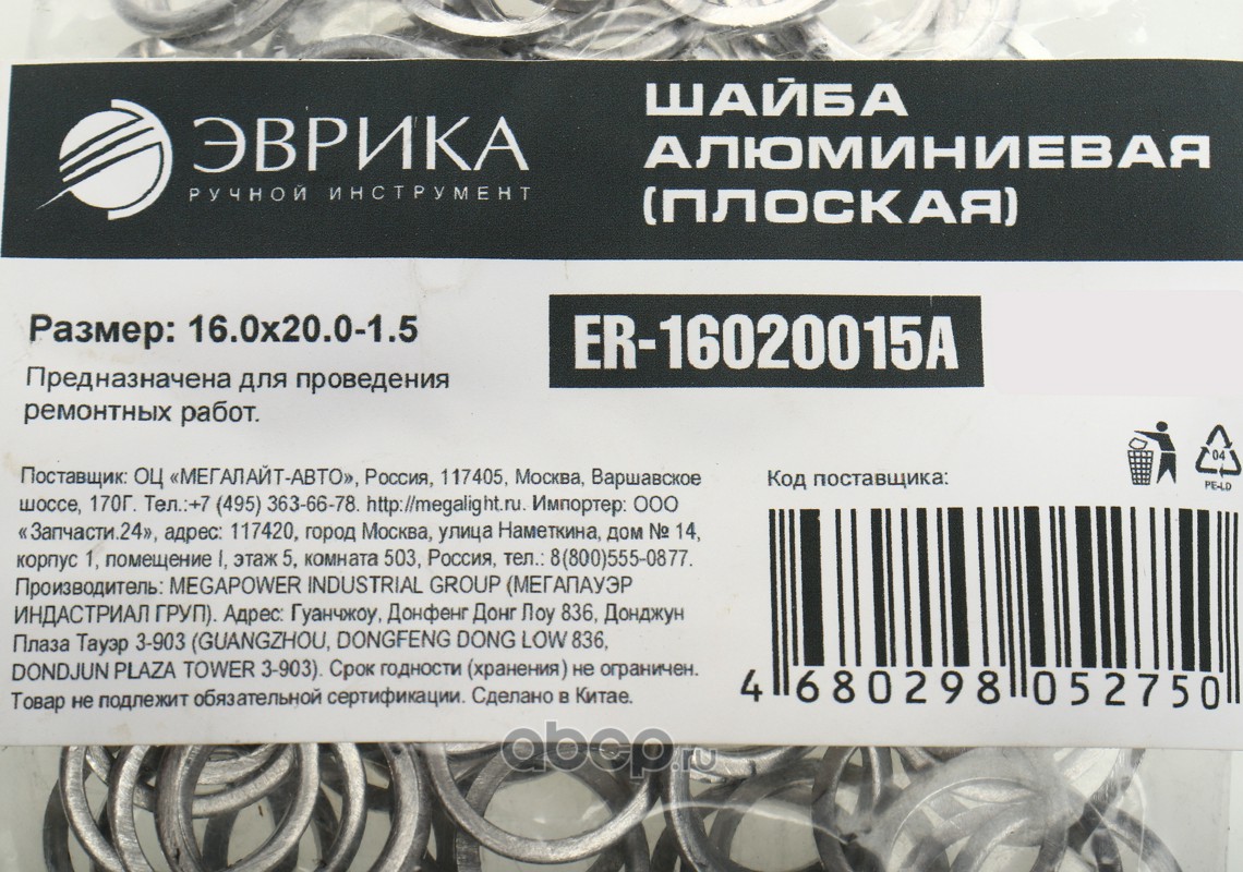 Шайба 16.0х20.0-1.5 алюминиевая (плоская) /100/3000 NEW