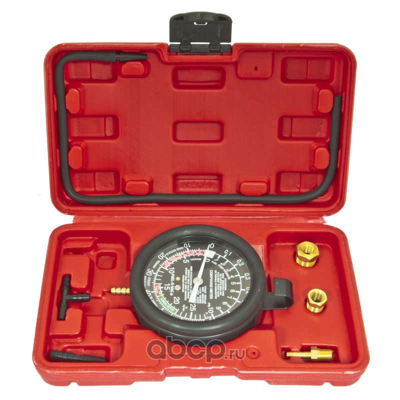 Тестер давления топлива и вакуума в наборе с резьбовыми адаптерами 9пр., в кейсе /1/20