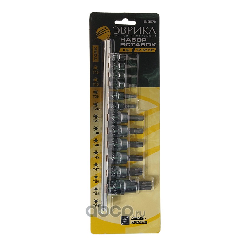 | ЭВРИКА | ER95070 | Набор вставок 1/4"&3/8"&1/2" торкс T10-T60 12 предметов /1/5/10 | ||