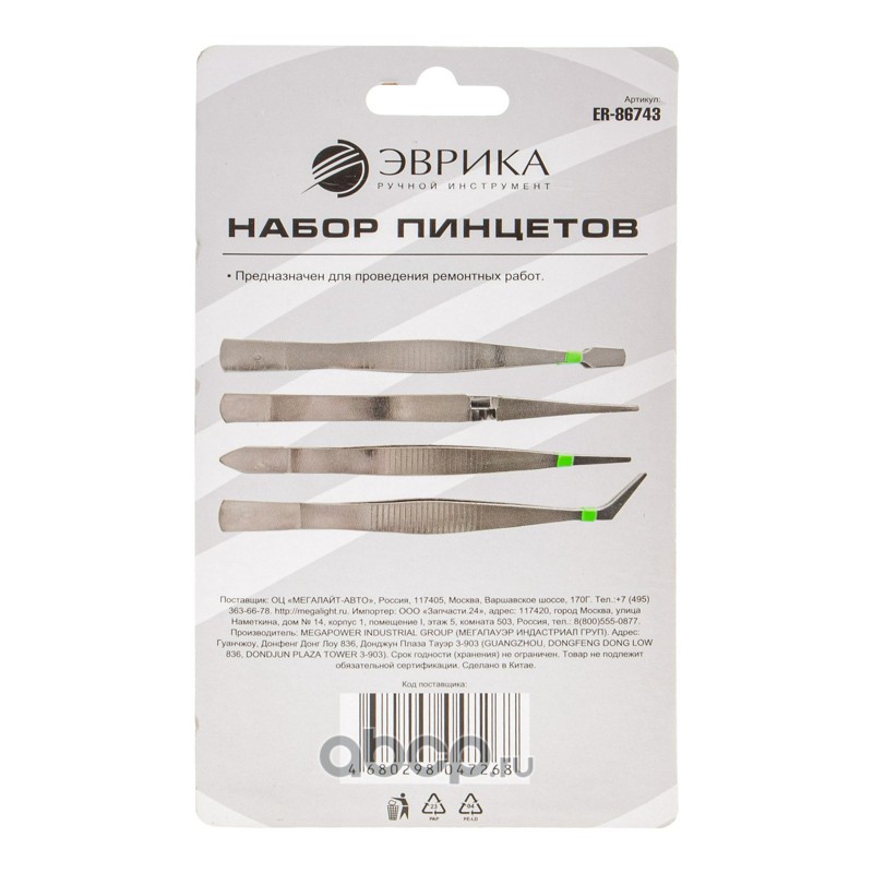 Набор пинцетов 4пр. в блистере /1/100