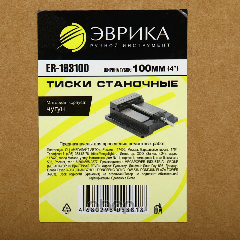 Тиски станочные 4"-100мм чугунные /1/10 NEW