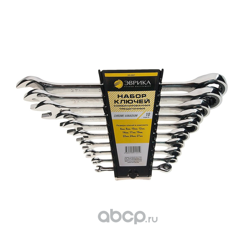 | ЭВРИКА | ER20627 | Набор ключей комбинированных трещоточных 10 предметов 6,8,10,12,14,17,19,22,24,27мм (на держателе) 5/10 | ||