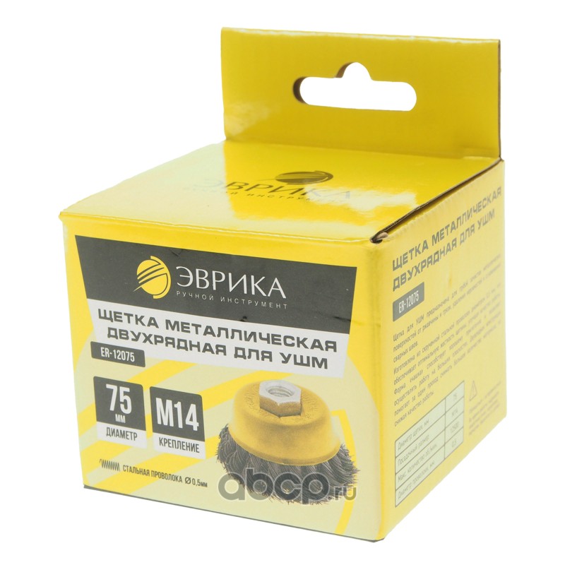 Щетка для УШМ 75мм М14 "Чашка" двухрядная стальная проволока 0,5мм (макс. 12500 об/мин.) /1/40 NEW