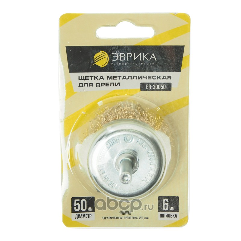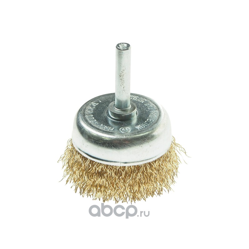 Щетка для дрели 50мм "Чашка" со шпилькой 6мм, латунированная стальная проволока 0,3мм (макс. 4500 об/мин.)в блистере /1/200 NEW
