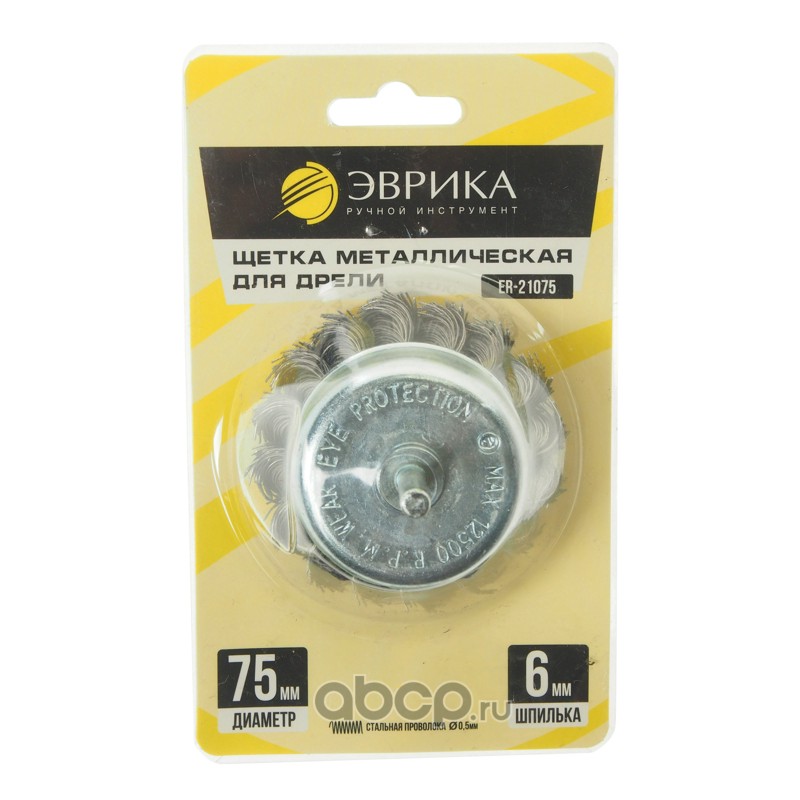Щетка для дрели 75мм "Чашка" со шпилькой 6мм, стальная проволока 0,5мм (макс. 12500 об/мин.)в блистере /1/80 NEW