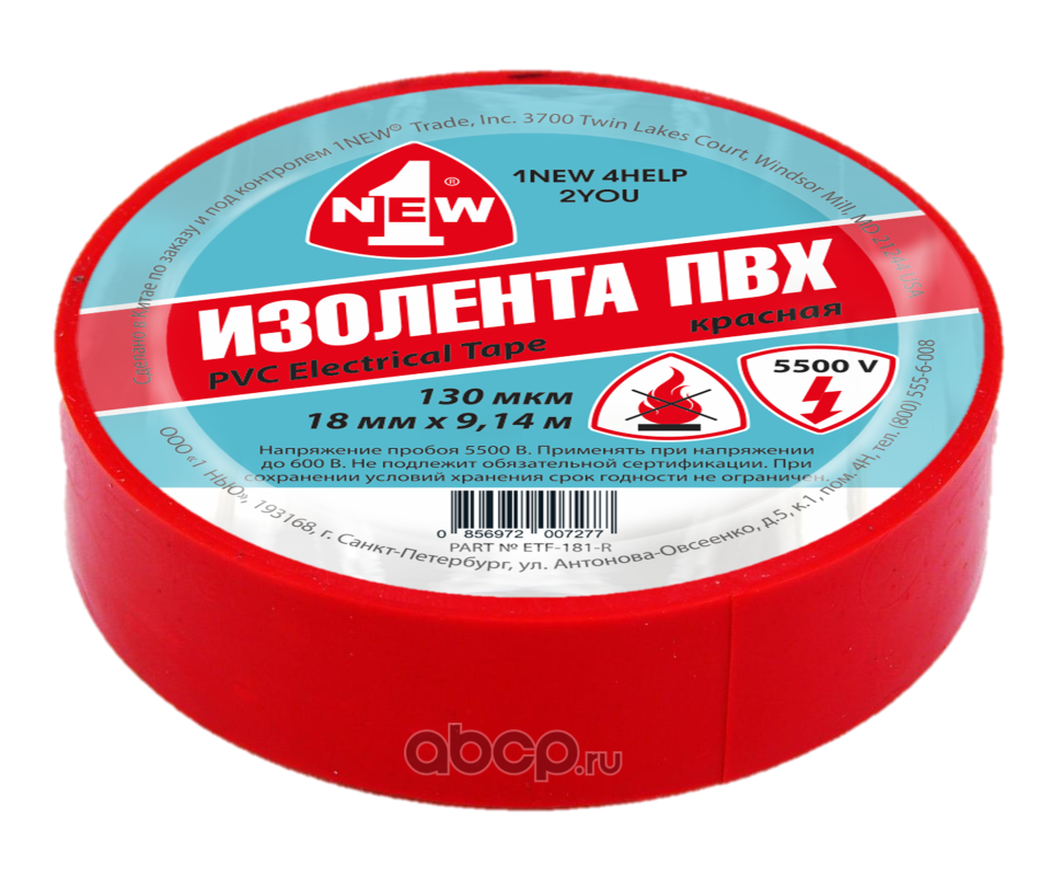 1NEW ETF181R Изолента огнестойкая красная 130 мкм*18 мм
