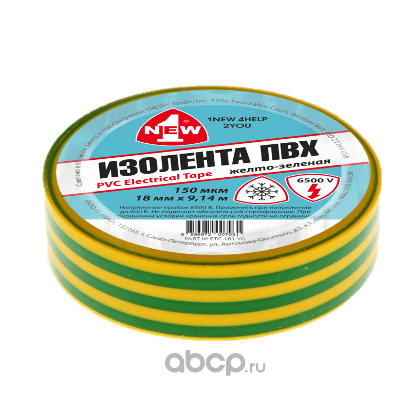 1NEW ETС181YG Изолента морозостойкая желто-зеленая 150 мкм*18 мм