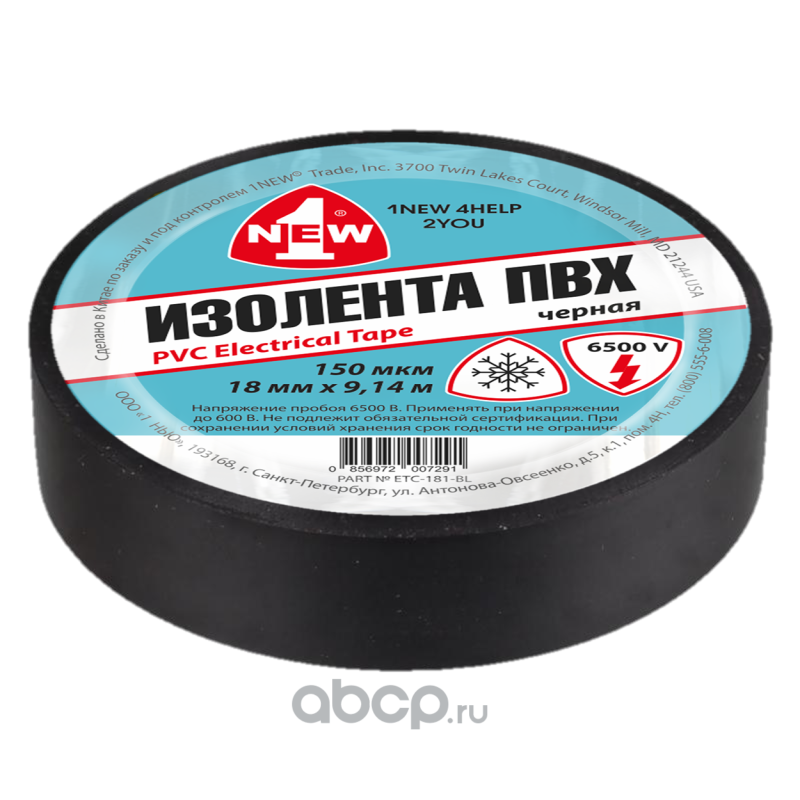 1NEW ETC181BL Изолента морозостойкая черная 150 мкм*18 мм