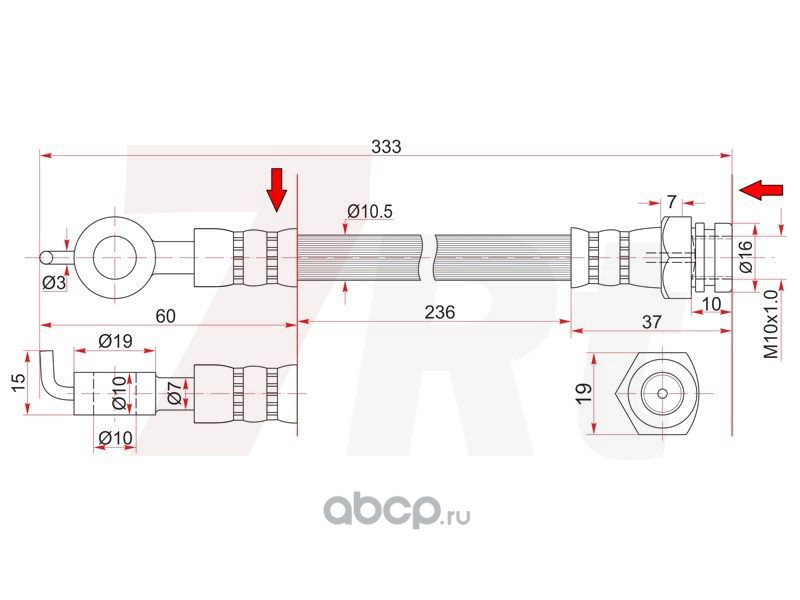 | 7Rt | 777X35282 | Шланг тормозной передний левый=правый 2WD | ||