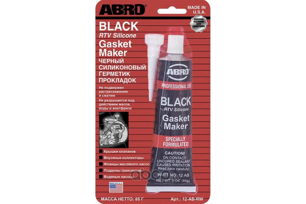 | ABRO | 12ABCH | Герметик-прокладка "ABRO MASTERS" силикон (до +260°С) (85гр) черный | ||
