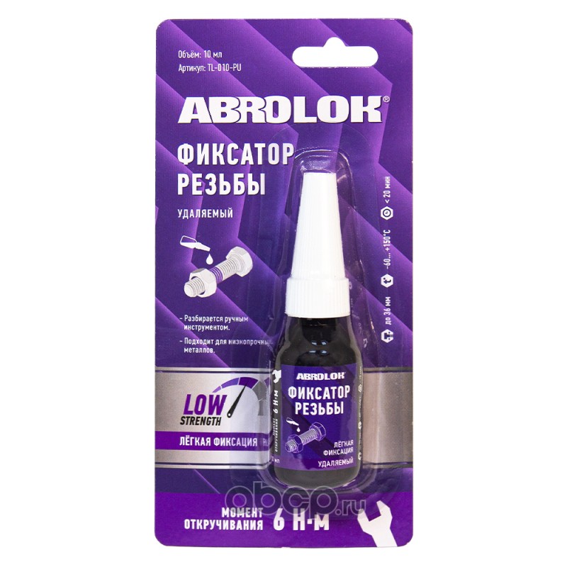 | ABRO | TL010PU | Фиксатор резьбы фиолетовый (удаляемый) ABRO MASTERS 10 мл | ||