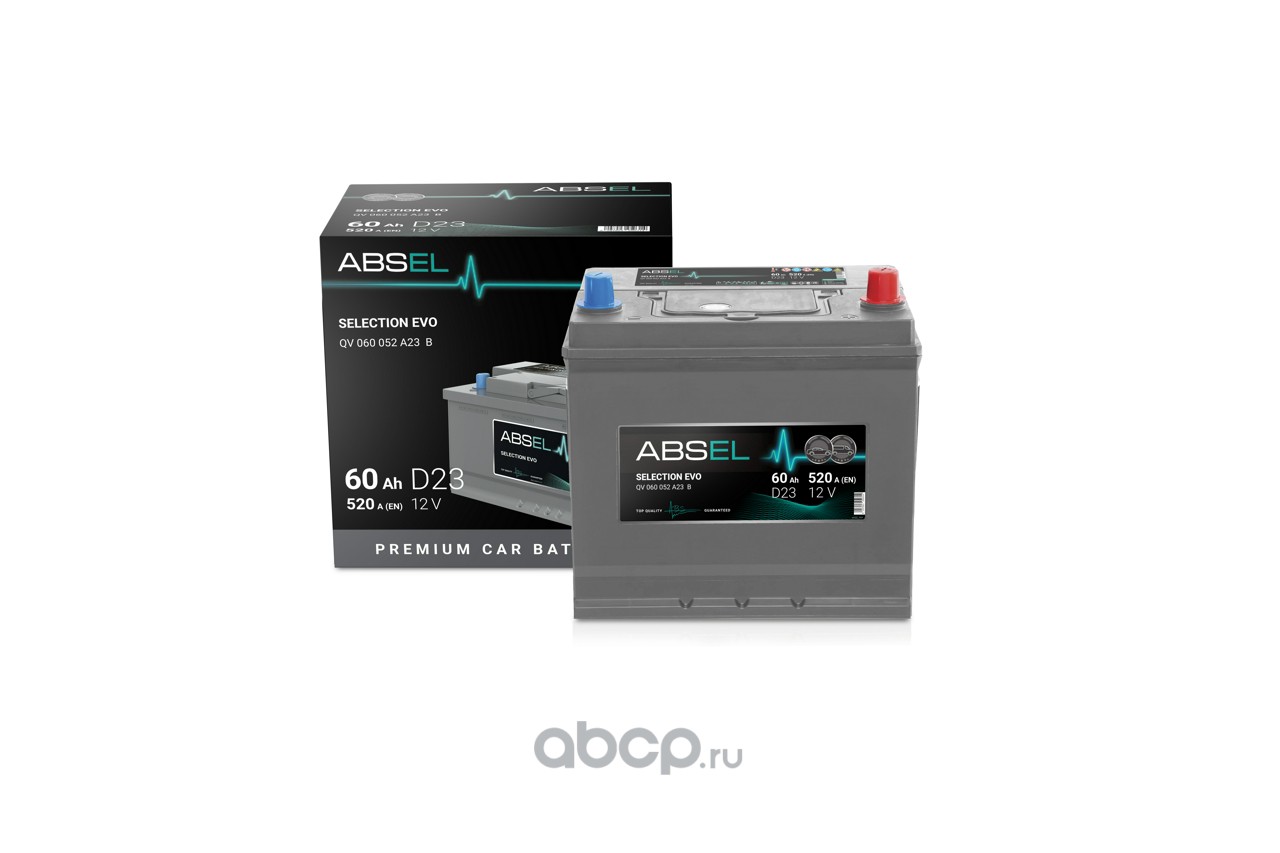 | ABSEL | QV060052A23B | Батарея аккумуляторная 60А/ч 520А 12B обратная полярн. выносные (Азия) клеммы | ||