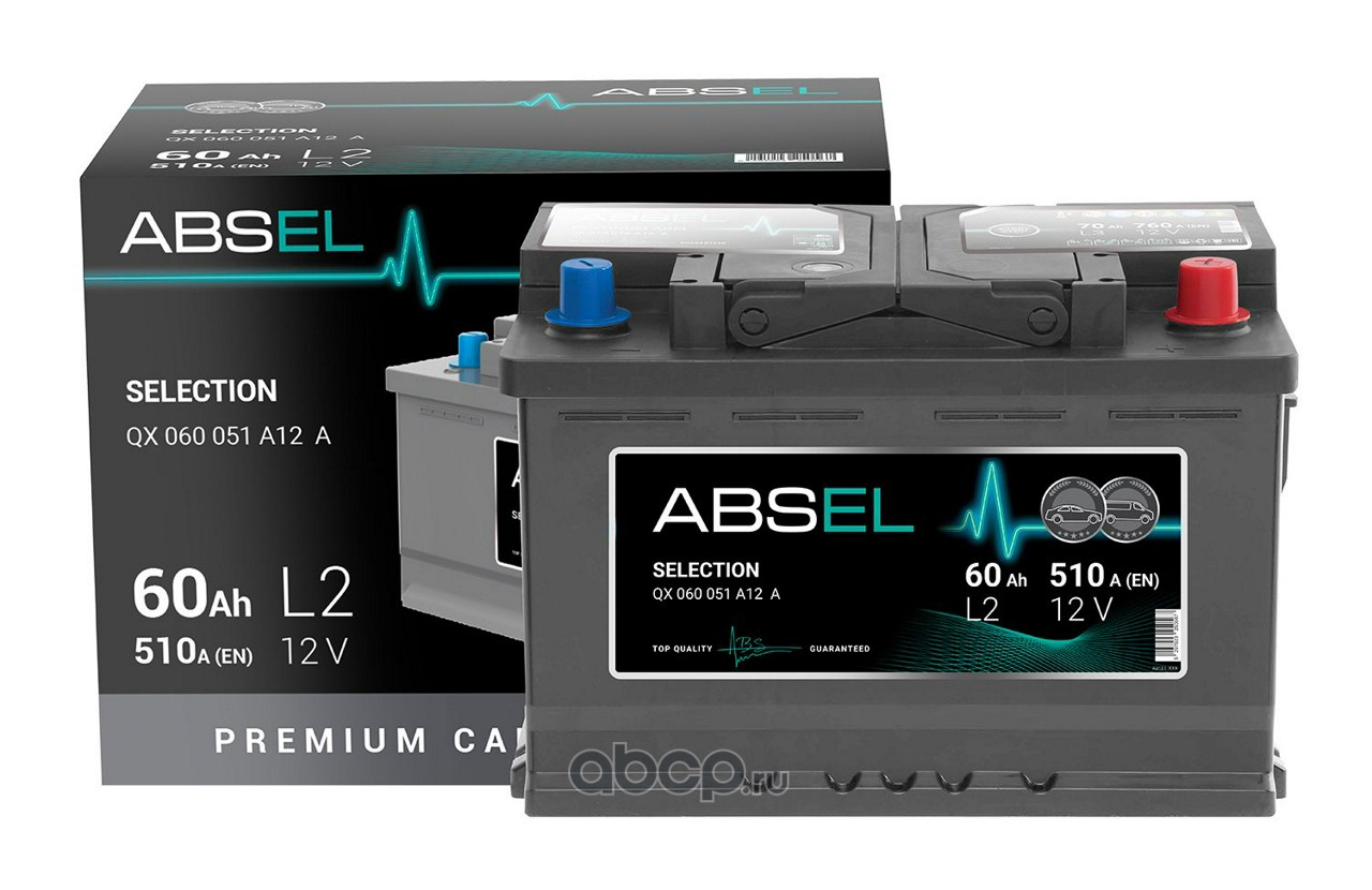 | ABSEL | QX060051A12A | Батарея аккумуляторная 60А/ч 510А 12B обратная полярн. стандартные (Европа) клеммы | ||