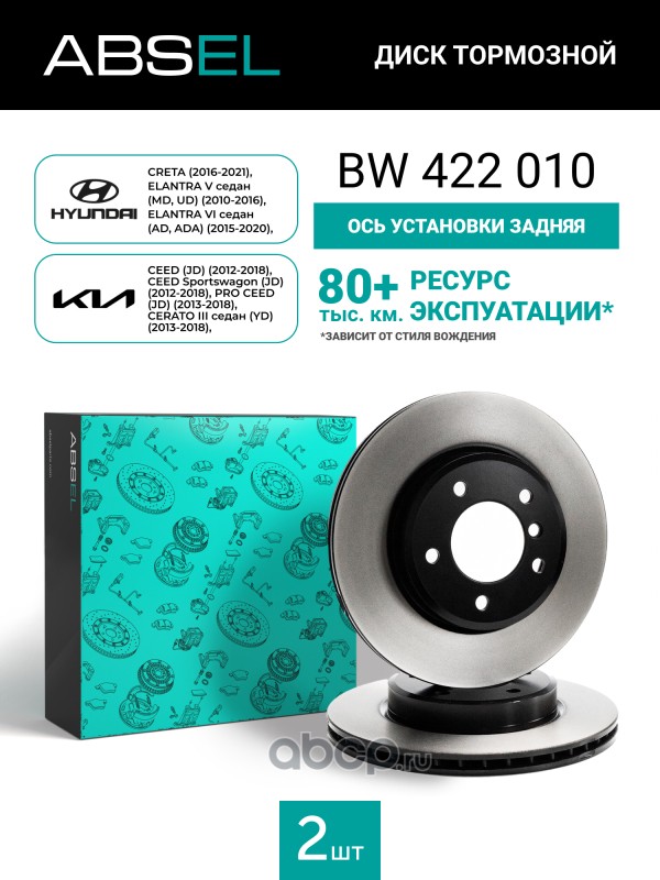 | ABSEL | BW422010 | Диск тормозной передний (окрашенный) | ||