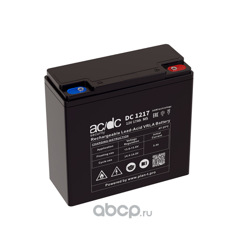 | AC/DC | DC1217M5 | Аккумулятор AC/DC security DC1217 болт М5 17А*ч 181x76x170 | ||