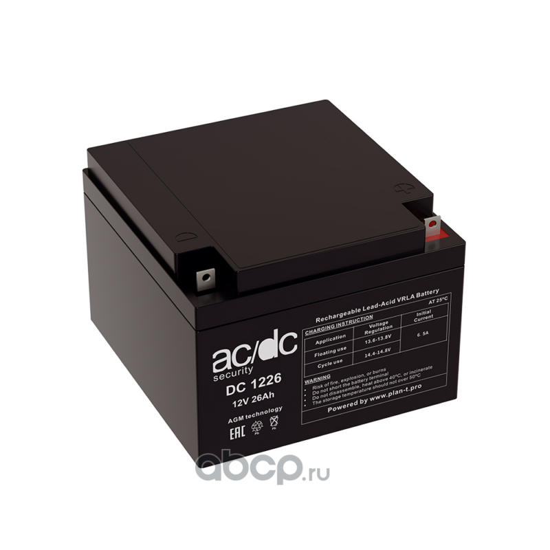 | AC/DC | DC1226 | Аккумулятор AC/DC security DC1226 болт+гайка 5,5мм 26А*ч 175x166x125 | ||