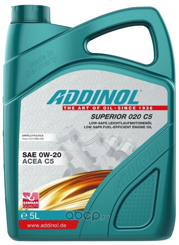 | ADDINOL | 4014766241740 | Масло моторное синтетика 0W-20 5 л. | ||