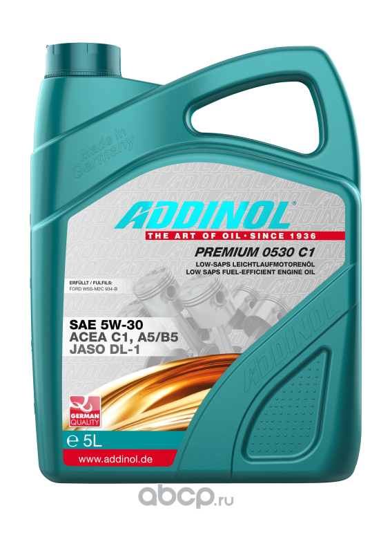 | ADDINOL | 4014766241306 | Масло моторное синтетика ADDINOL Premium 0530 C1 5W-30 5 л. | ||