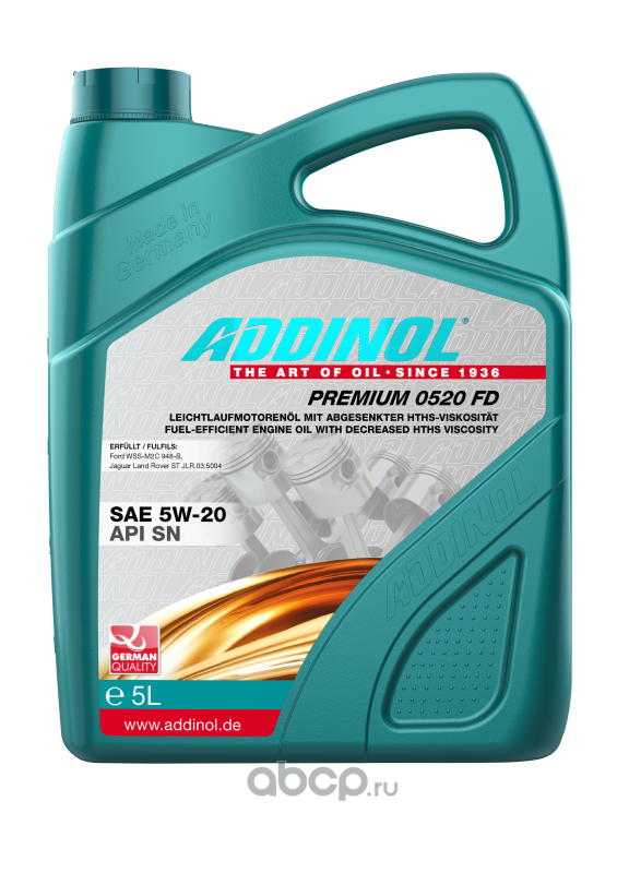 | ADDINOL | 4014766241276 | Масло моторное синтетика ADDINOL Premium 0520 FD 5W-20 5 л. | ||
