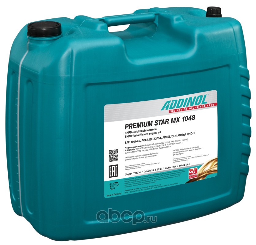 | ADDINOL | 4014766240736 | Масло моторное полусинтетика ADDINOL Premium Star MX 1048 10W-40 20 л. | ||