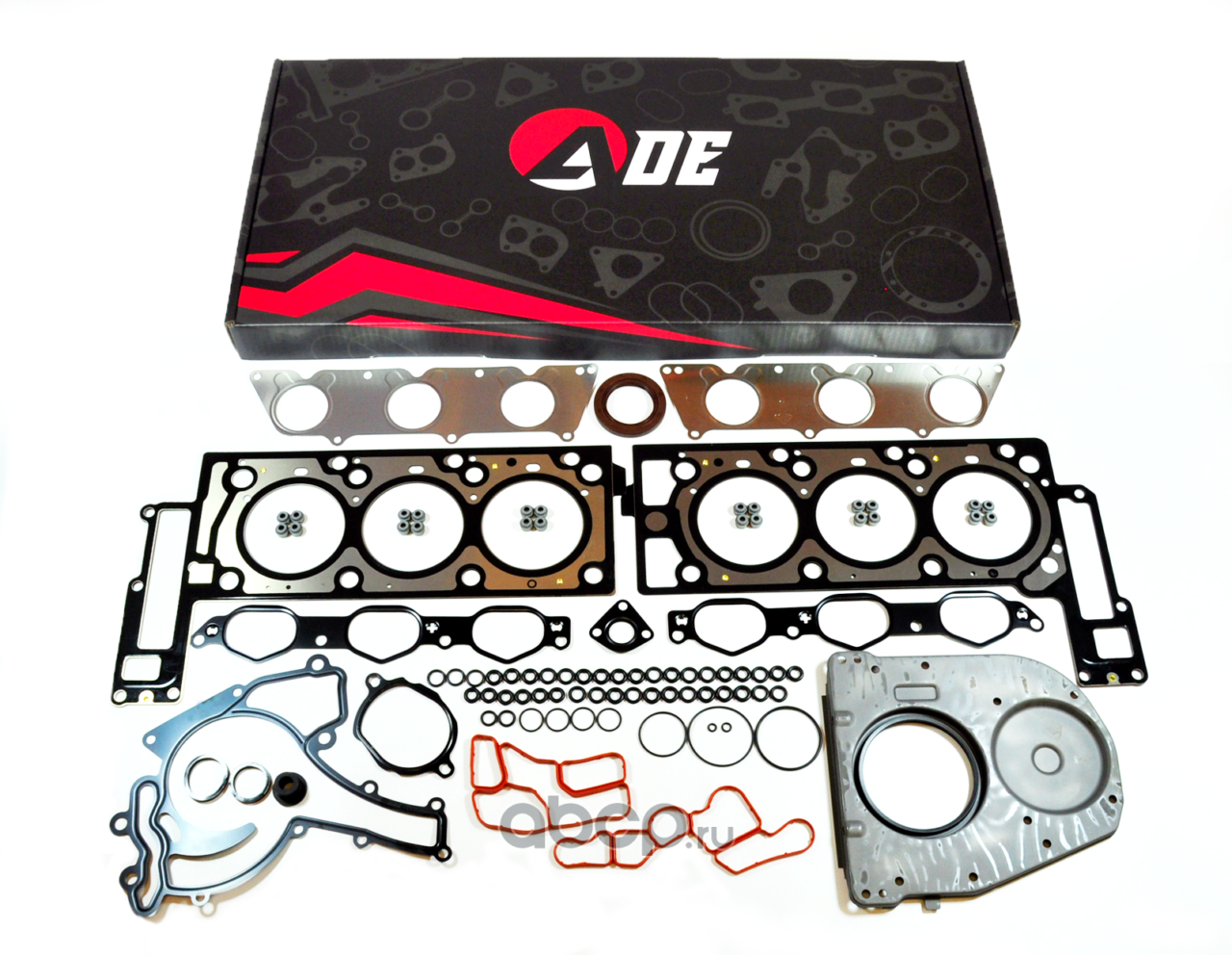 Ассортимент "ADE" включает в себя востребованные запасные части различных товарных групп для японского, корейского европейского Российских автопарков. Широко представлены детали двигателя, поршни, цепи, прокладки и др.