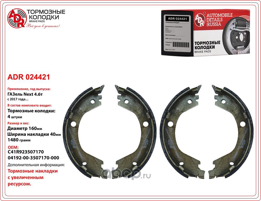 | ADR | ADR024421 | Колодки стояночного тормоза ГАЗель NEXT 4,6т |