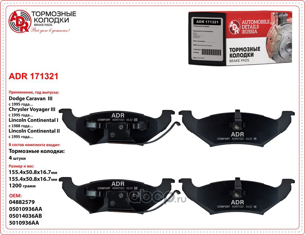 | ADR | ADR171321 | Тормозные колодки задние CHRYSLER Voyager III, DODGE Caravan III, LINCOLN Continental, Continental II OEM 05019036 AA | ||