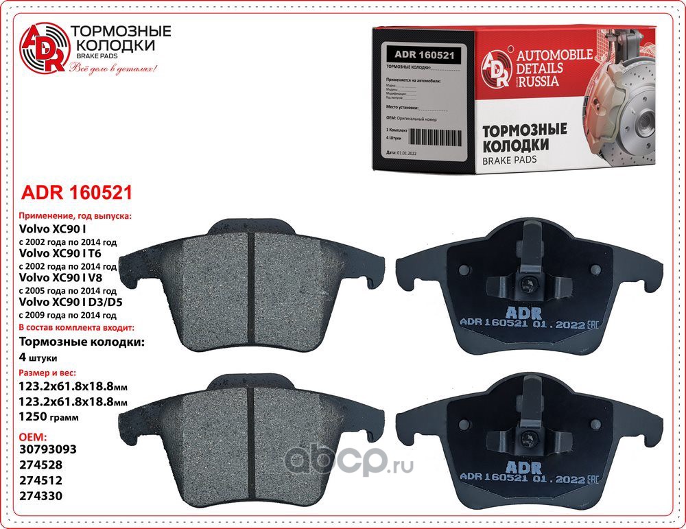 | ADR | ADR160521 | Колодки тормозные задние VOLVO XC90 OEM 30793093 | ||