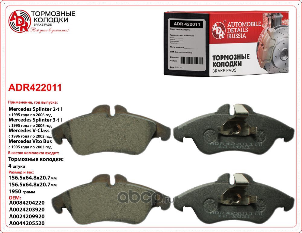 | ADR | ADR420111 | Колодки тормозные передние MERCEDES GL, ML II, R, OEM 0064204520 | ||