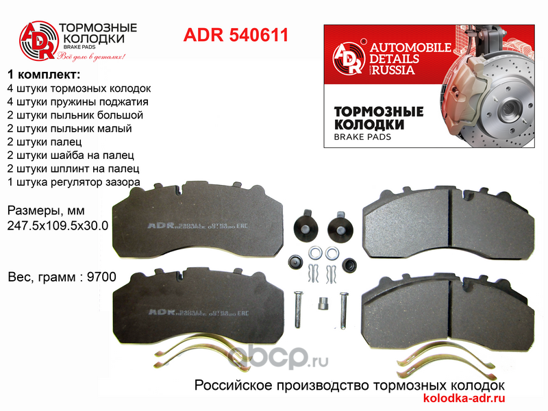 Успех «ADR» обусловлен, прежде всего, качественной продукцией. В производстве тормозных колодок используются собственные разработки. Продукция отвечает международным правилам и стандартам.
