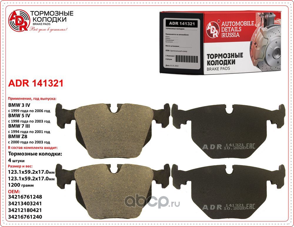| ADR | ADR140411 | Колодки тормозные передние BMW 1, 3, 5, 6, 7, OEM 34116794915 | ||