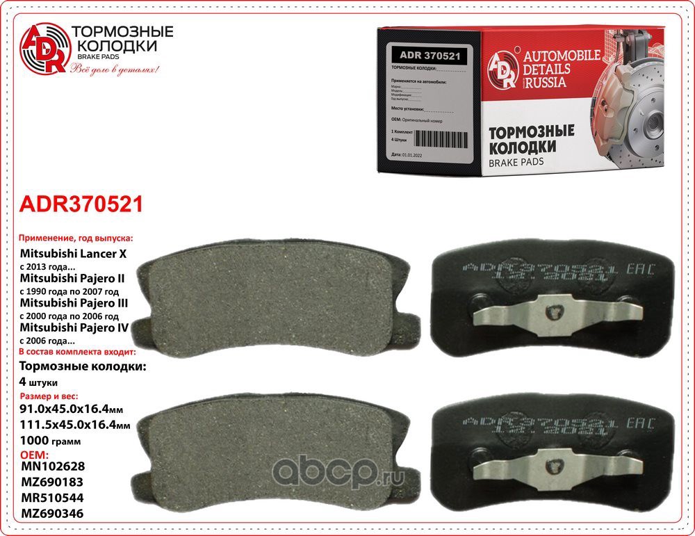 | ADR | ADR370521 | Колодки тормозные задние CITROEN C4, C-Crosser, PEUGEOT, MITSUBISHI, OEM MN102628 | ||